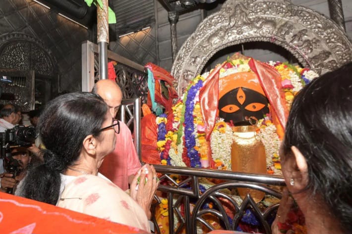 বাংলা নববর্ষ বা পহেলা বৈশাখের আগে মঙ্গলবার সন্ধ্যায় কালীঘাট মন্দিরে পূজা দিলেন মুখ্যমন্ত্রী মমতা বন্দ্যোপাধ্যায়। প্রতি বছরের প্রথা মেনে এদিনও তিনি পরিবারের সদস্যদের নিয়ে মন্দিরে উপস্থিত হন। মন্দিরের গর্ভগৃহে প্রবেশ করে প্রদীপ জ্বালিয়ে এবং মায়ের চরণে শাড়ি ও মিষ্টির ডালি অর্পণ করে বিশেষ প্রার্থনা করেন তিনি। পূজা শেষে বাইরে বেরিয়ে সাংবাদিকদের মুখোমুখি হয়ে তিনি রাজ্যবাসীকে নববর্ষের আগাম শুভেচ্ছা জানান এবং সকলের সুখ-সমৃদ্ধি কামনা করেন।